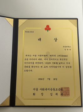 | 서울사랑의열매 <대학생 그린(Green) 모금 아이디어 대회> 수상을 축하드립니다. | |||